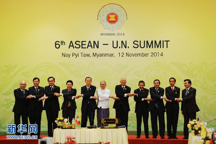 11月12日,在缅甸首都内比都,与会领导人在会议开始前合影。 当日,第6届东盟——联合国领导人会议在缅甸首都内比都举行。新华社记者刘昀摄