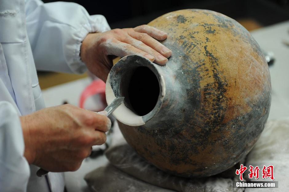 文物修复的周期很长,一名合格的文物修复者须掌握化学、物理学、生物学、地质学、历史学、美学等多种学科知识体系。 杨艳敏 摄