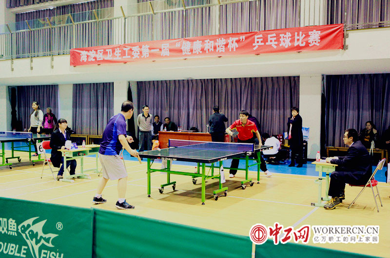 在全系统上下齐心聚力创建文明区之际,为进一步贯彻落实《国家全民健身发展纲要》,更好地提高职工群众健康素质,培养职工的团结合作精神,由海淀区卫生工委工会主办、海淀区疾控中心承办的海淀区卫生工委第一届“健康和谐杯”乒乓球比赛,于11月2日上午,在中关村二小百旺校区体育馆拉开了帷幕。中工网记者 葛姗 摄