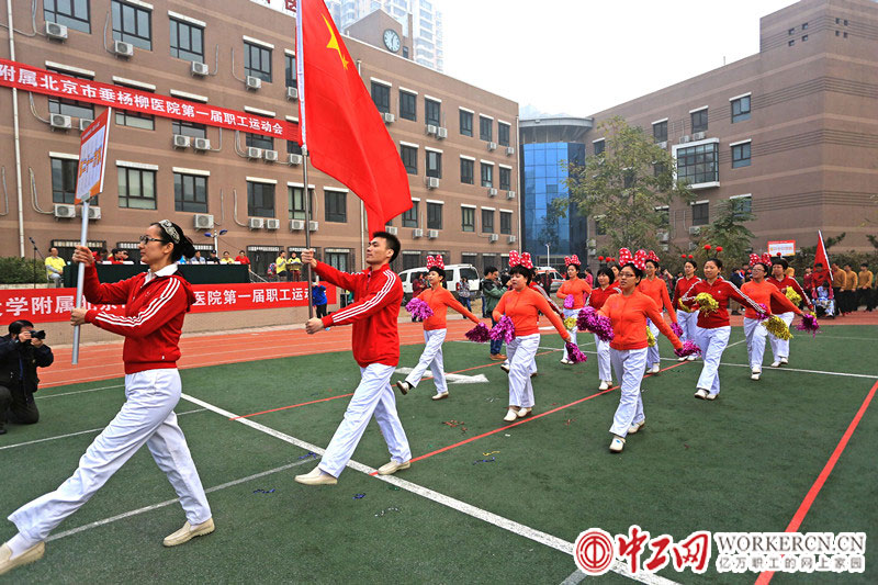 10月25日,正是金风送爽的美好时节,北京市垂杨柳医院全体职工满怀喜悦心情,以饱满的精神状态迎来了第一届职工运动会。本届运动会,是医院自建院以来第一次举办的职工运动盛会,共有39个代表团、近600名职工参加比赛。区卫生局书记苏民、副局长王乃锋、劲松办事处书记殷宁、双井派出所所长庄严、劲松派出所政委郑金花、区卫生局党办主任刘镇平到场出席。