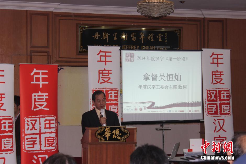 当地时间11月14日,由马来西亚汉文化中心主办的年度汉字评选正式拉开帷幕,主办单位公布了年度十大候选汉字。图为马来西亚年度汉字工委会主席吴恒灿在新闻发布会上致辞。 中新社发 赵胜玉 摄