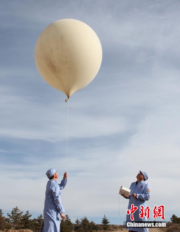 北京时间11月15日2时53分,中国在太原卫星发射中心用长征二号丙运载火箭,成功将遥感卫星二十三号送入太空。图为发射前科研人员做气象侦测。中新社发 陈海强 摄