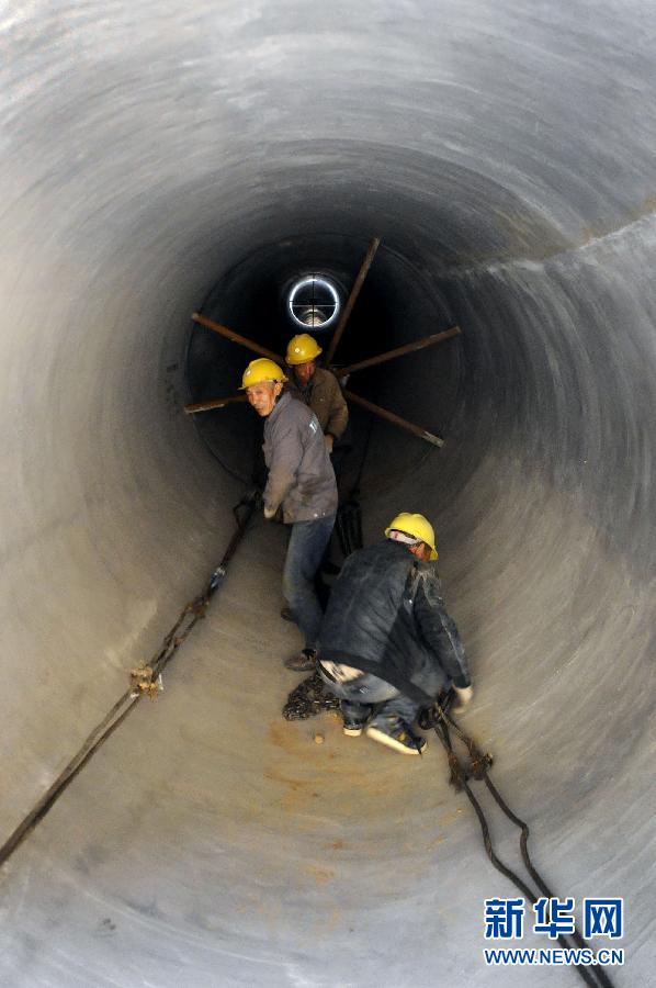 河南省南水北调办介绍,截至目前,河南省南水北调配套工程建设已累计完成管道铺设约911公里,占总长的94.2%,工程进入扫尾阶段,配套水厂建设正快速推进。2014年后两个月将有15条口门线路、18座水厂通水,目前各项接水准备工作基本就绪,干渠正式通水后将按计划承接南水北调的水。新华社记者 李博 摄