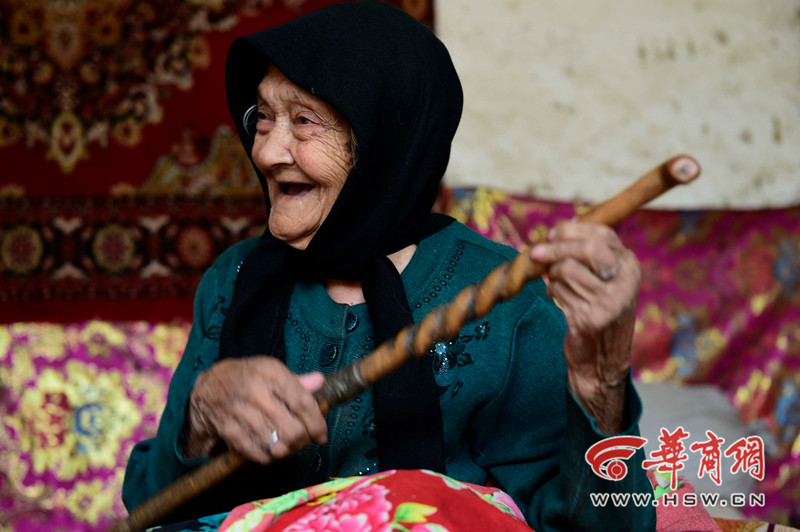 11月12日上午11时,阿丽米罕 色依提用拐杖当民族乐器,演唱一首维吾尔族的情歌。