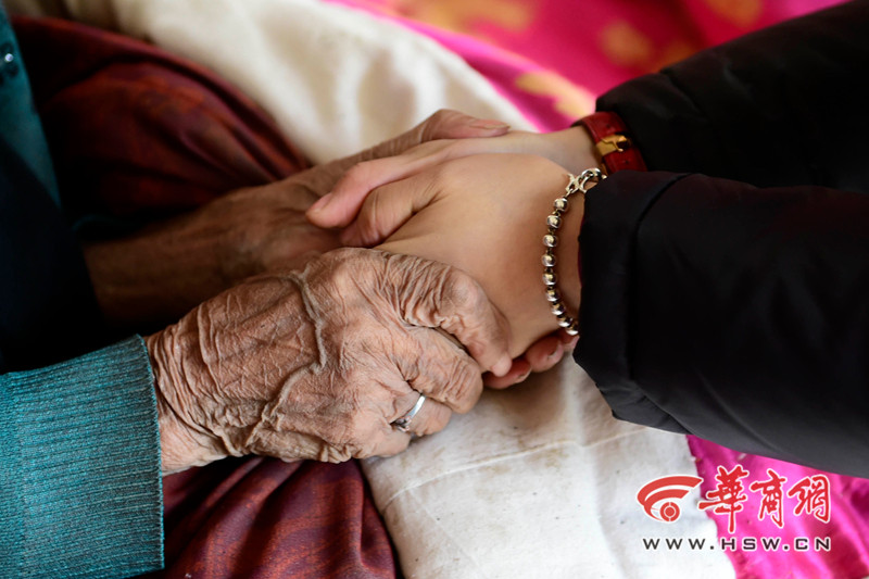 11月12日中午,阿丽米罕 色依提在和一位来访者握手时,发现对方手冰,她用双手给对方暖手。