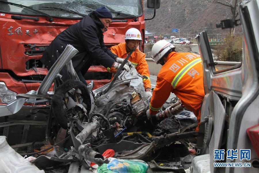 11月15日7时30分许,在四川省阿坝藏族羌族自治州松潘县境内国道213线安宏乡段,距离德胜堡村三至四公里处,一辆牌照为渝ADL870的面包车与一辆牌照为甘A56666的货车相撞,造成3人当场死亡,5人经抢救无效死亡。目前,事故现场处理完毕,事发路段恢复通车,事故原因正在进一步调查中。 新华社发