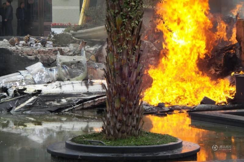 组图:成都附近一架飞机坠毁飞行员弹射逃生