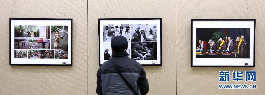 11月17日,参观者在观看展出的摄影作品。