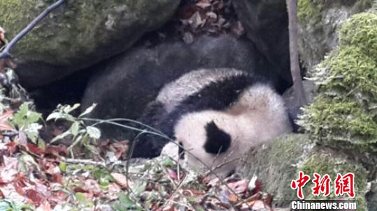 17日上午,在唐家河国家级自然保护区发现受伤的大熊猫。 保护区提供 摄