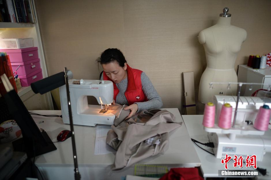 重庆渝北区冉家坝龙湖大城小院,记者在郭知画的卧室看到,连衣裙、外套、羽绒服、风衣布满衣橱,DIY化妆盒、手工小帐篷充塞房间,俨然一个公主房。这些全都是妈妈王怡亲手设计,亲手制作。“画画喜欢这些可爱的东西,我也希望她能过得开心,就给她做了。虽然要花费很多时间,但我觉得值。”王怡说,选布料、画图设计、缝纫、熨烫,一件衣服要经过一道道繁复的工序。2012年冬天做第一件衣服时,她还是个连缝纫机都不会用的新手,到现在已经为女儿设计制作出上百件衣服。32岁的王怡告诉记者,她大学读的法律,做衣服没有任何基础。2012年女儿两岁,开始爱臭美,王怡本人也觉得外面买的衣服不是很好看,便动了自己动手的念头。 “因为之前没学过,怕家人反对,就偷偷在网上买了一台缝纫机。”王怡说,缝纫机买回来后,她连怎么用都不知道。丈夫一开始就反对,觉得她根本做不好。缝纫机送到家里是圣诞节前夕,为了能让女儿在圣诞节穿上她亲手做的衣服,王怡开始着手学习:看缝纫机说明书,看网上视频教程,哪类衣服用什么样的线、什么样的针……“白天要带女儿,只能晚上学。”王怡说,熟悉机器、摸清整个制作流程她花了整整三个通宵,后来称体重时发现自己瘦了6斤。中新社发 渝友 摄