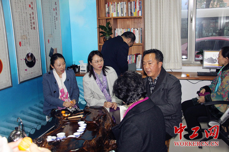图为工会干部参观国税一所茶文化书屋。中工网记者 葛姗 摄