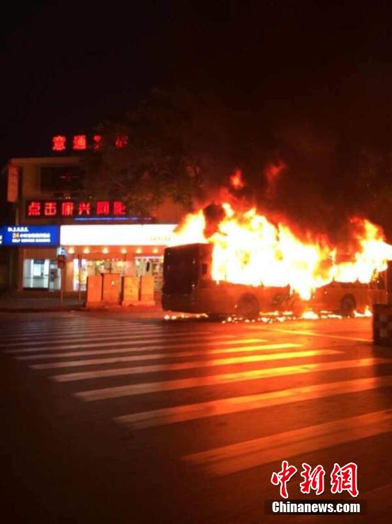 11月21日18时20分左右,广西柳州市屏山大道一辆搭载约40名乘客的快速公交车(BRT)在行驶过程中突然起火,目前火势已经被扑灭,18名伤者被送往医院救治,公交车被烧得仅剩骨架,事故原因正在调查当中。图为事故现场。现场目击者 供图