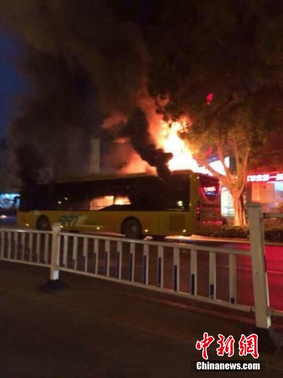11月21日18时20分左右,广西柳州市屏山大道一辆搭载约40名乘客的快速公交车(BRT)在行驶过程中突然起火,目前火势已经被扑灭,18名伤者被送往医院救治,公交车被烧得仅剩骨架,事故原因正在调查当中。图为事故现场。现场目击者 供图