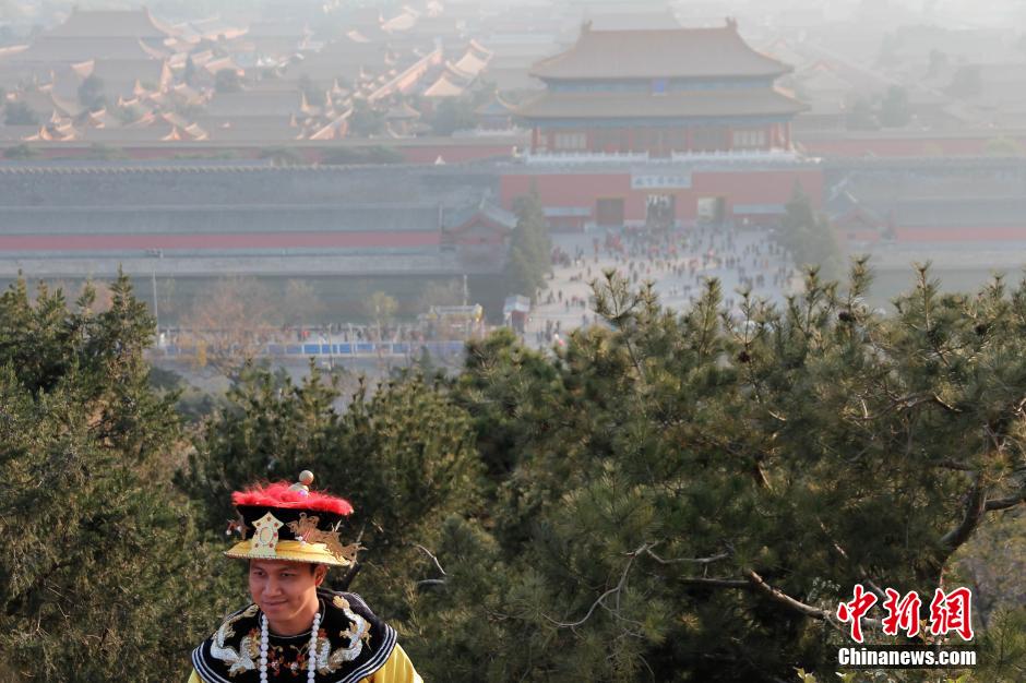11月21日,北京雾霾初散,空气质量明显改善,市民室户外活动增多。图为游客在景山公园游园。中新社发 宋汉涛 摄