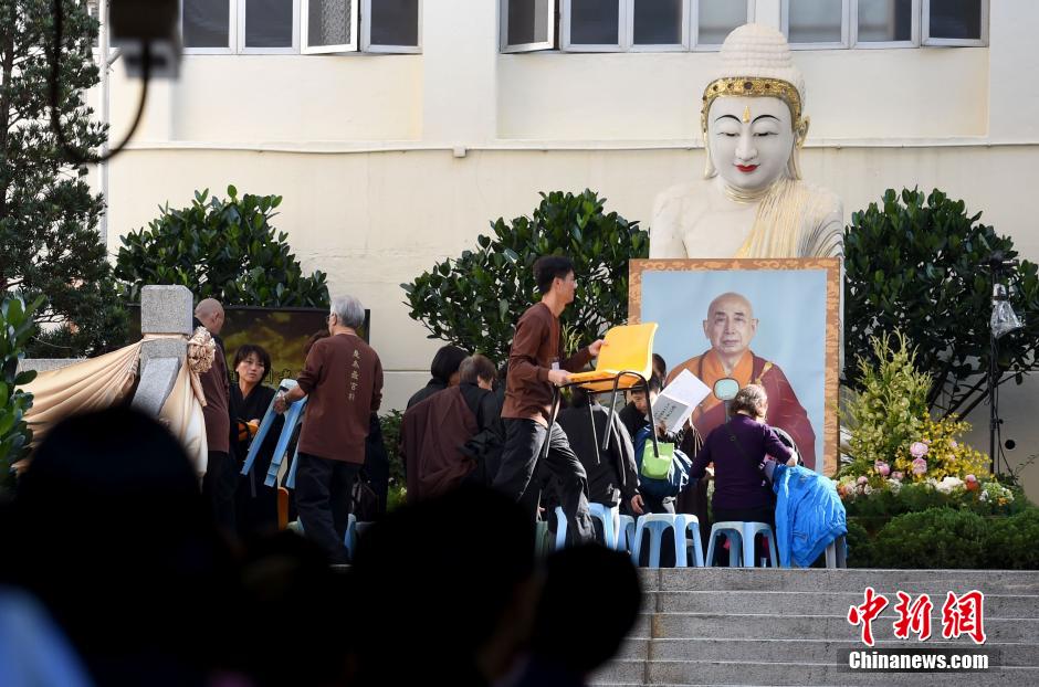 11月21日,香港佛教联合会会长觉光长老圆寂舍报,“觉光长老圆寂追思赞颂仪典”在香港观宗寺举行。中新社发 张宇 摄