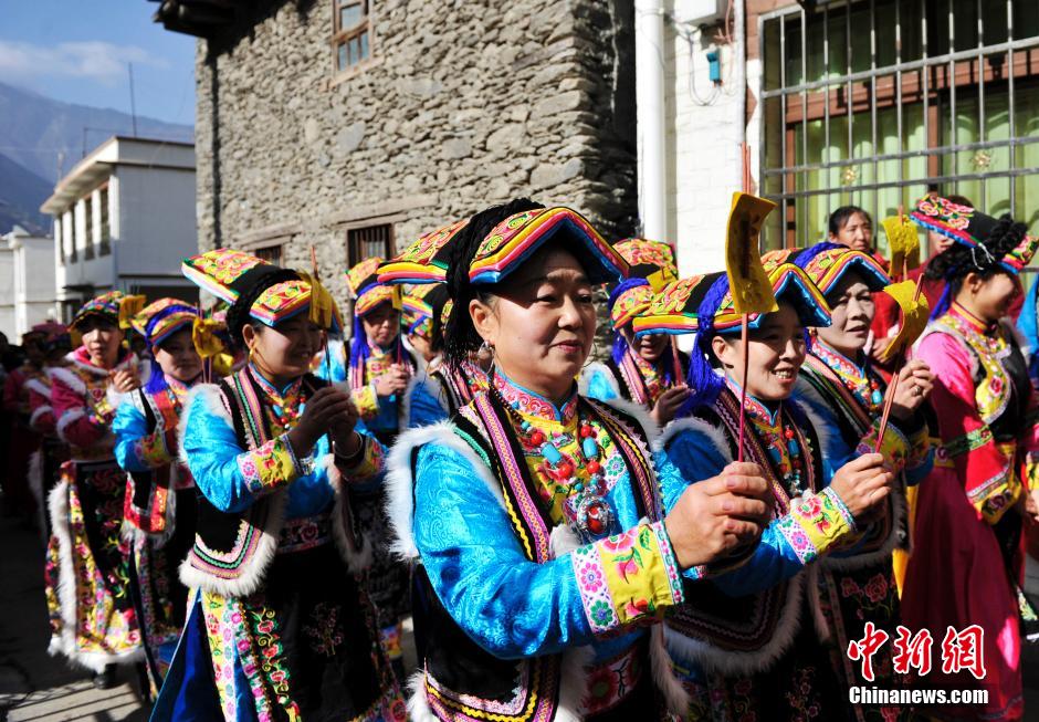 11月21日,四川理县羌族民众在羌族传统节日“羌年”即将到来之际举行羌族祭祀仪式庆丰收迎新年。中新社发 安源 摄
