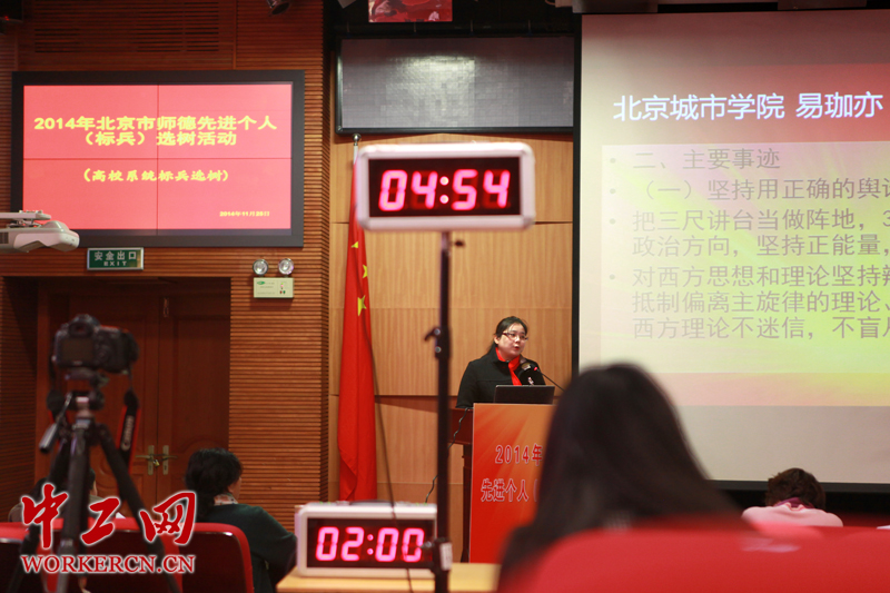 11月25日上午,来自北京区域高校系统的10位候选人在首都体育学院报告厅参加了综合评选。单位评述限时6分钟。 中工网记者 李雪峰 摄