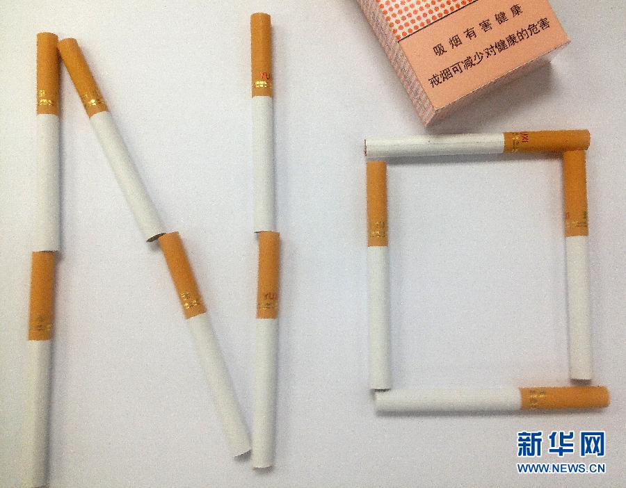 摆放成“NO”字样的香烟(11月24日摄)。国务院法制办11月24日公布了卫生计生委起草的《公共场所控制吸烟条例(送审稿)》,并公开征求意见。这是我国首次拟制定行政法规在全国范围全面控烟。新华社记者季春鹏摄