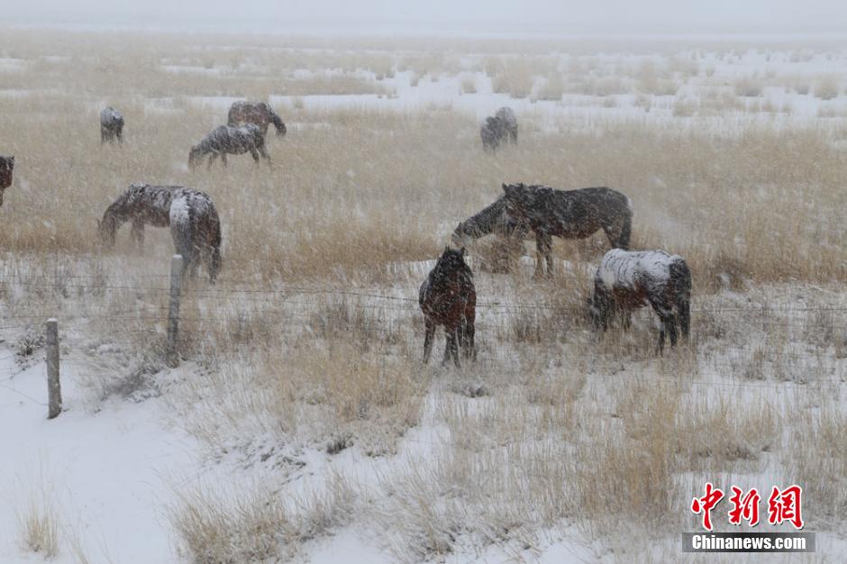 受寒潮影响,11月25-26日,新疆哈密地区巴里坤县迎来降雪降温天气,出现小雪转中雪,最低气温降至-13℃。截至记者发稿时,大雪仍在下。巴里坤县相关单位也及时做好此次降雪降温天气的应急措施。巴里坤县交通管理大队也在第一时间派出警力,在县城各个路口进行交通指挥,确保在降雪过程中的道路安全。 张国军 摄