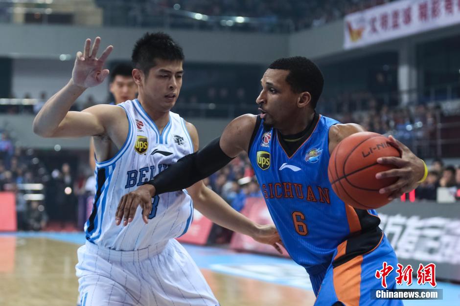 11月26日,四川野马汽车队球员菲巴在比赛中。当日,在2014-2015赛季中国男子篮球职业联赛(CBA)第11轮的一场比赛中,北京首钢队主场以130比96战胜四川野马汽车队。 中新社发 熊然 摄