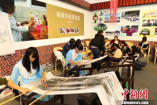 图为学生在现场表演永春纸织画。 李南轩 摄