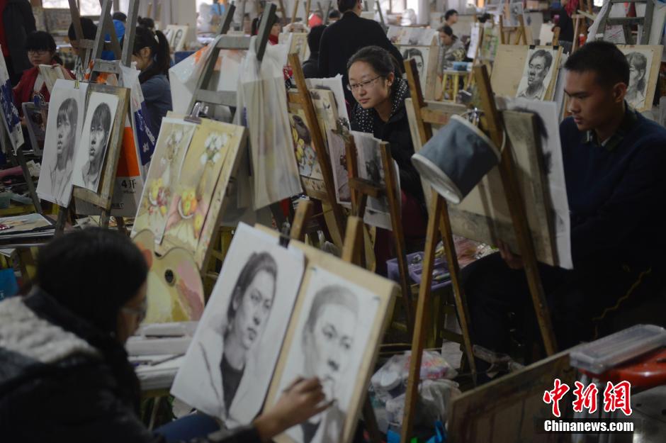 11月26日,山西太原联艺美术培训学校,艺术类高考生沉浸在“画海”中苦练基本功,备战即将到来的中国高考艺术联考。在中国,艺术院校招生考试不但是追逐艺术梦想年轻人的舞台,也是许多学子步入高等院校的捷径,竞争十分激烈。中新社发 韦亮 摄