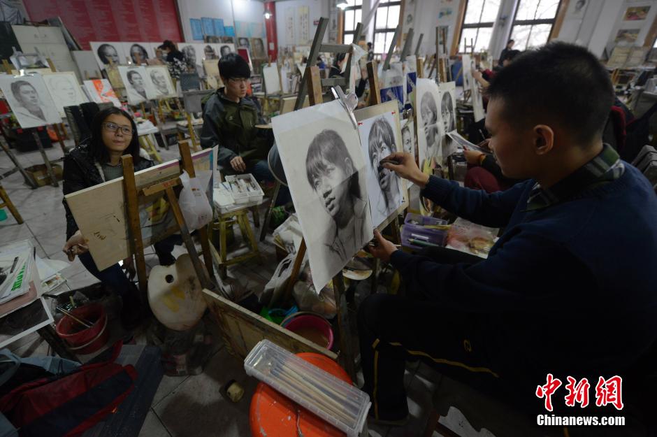 11月26日,山西太原联艺美术培训学校,艺术类高考生沉浸在“画海”中苦练基本功,备战即将到来的中国高考艺术联考。在中国,艺术院校招生考试不但是追逐艺术梦想年轻人的舞台,也是许多学子步入高等院校的捷径,竞争十分激烈。中新社发 韦亮 摄
