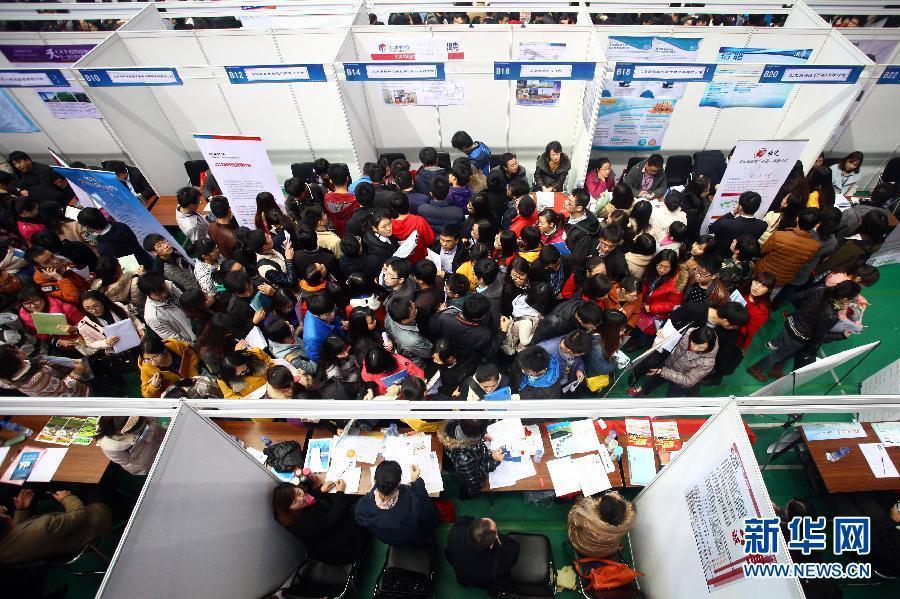 11月26日,天津大学2015届毕业生冬季大型双选会上人头攒动。当日,天津大学举行2015届毕业生冬季大型双选会,来自全国各地的330余家企事业单位前来招贤纳士,逾万名应届毕业生进场求职。新华社发(刘东岳 摄)