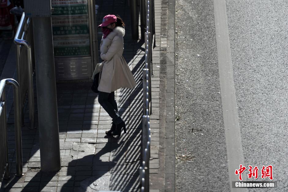 12月1日,受强冷空气影响,北京接连迎来持续大风降温天气,入冬首个寒潮让气温也跟着“跳水”。据北京市气象局预计,当日最高气温将跌至-1℃,最低气温将降至-7℃,均创今年入冬以来新低。图为街头行人身着厚重冬装出行抵挡寒风。 中新网记者 金硕 摄