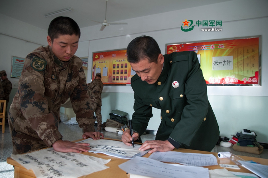 下午,退伍老兵的东西打包准备邮寄。写得一手好字的武绪辉为大家填写地址。“就当最后再为大家做点事儿吧!”当兵16年,每次接受任务总是非常愉快,临走了也一样。蔡川摄