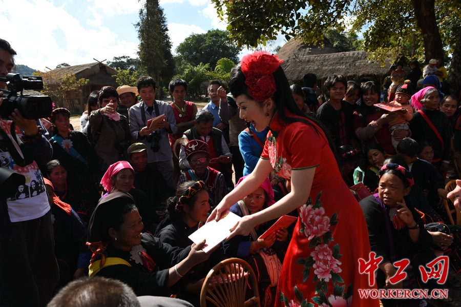 来自山西歌舞剧院青年歌唱家、中国音乐家协会会员、国家一级演员刘文涛的一曲《山丹丹开花红艳艳》在现场引发高潮。村民热情与艺术家互动,情绪高涨。摄影 刘英毅