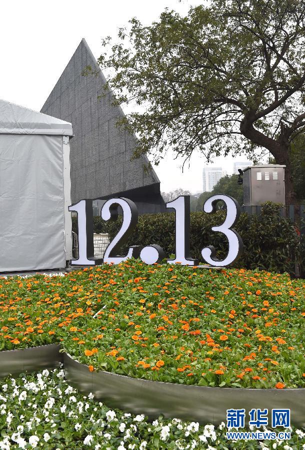 12月10日,南京大屠杀遇难同胞纪念馆前设置“12·13”花坛。近日,南京的侵华日军南京大屠杀遇难同胞纪念馆建筑及周边道路上布置了国家公祭日主题标语牌,纪念馆前设置了“12·13”花坛,以庄严肃穆的气氛迎接首个国家公祭日。新华社记者孙参摄