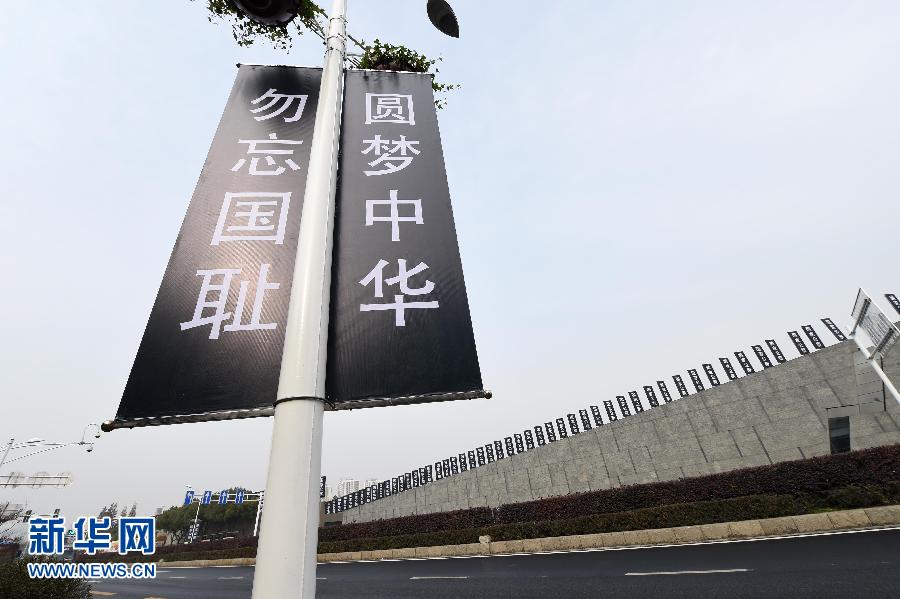 12月11日,南京大屠杀遇难同胞纪念馆建筑及附近道路上布置国家公祭日主题标语牌。近日,南京的侵华日军南京大屠杀遇难同胞纪念馆建筑及周边道路上布置了国家公祭日主题标语牌,纪念馆前设置了“12·13”花坛,以庄严肃穆的气氛迎接首个国家公祭日。新华社记者孙参摄