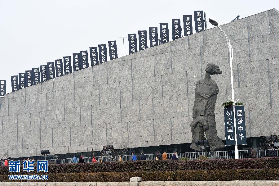 南京大屠杀遇难同胞纪念馆建筑及附近道路上设置的国家公祭日主题标语牌(12月11日摄)。近日,南京的侵华日军南京大屠杀遇难同胞纪念馆建筑及周边道路上布置了国家公祭日主题标语牌,纪念馆前设置了“12·13”花坛,以庄严肃穆的气氛迎接首个国家公祭日。新华社记者孙参摄