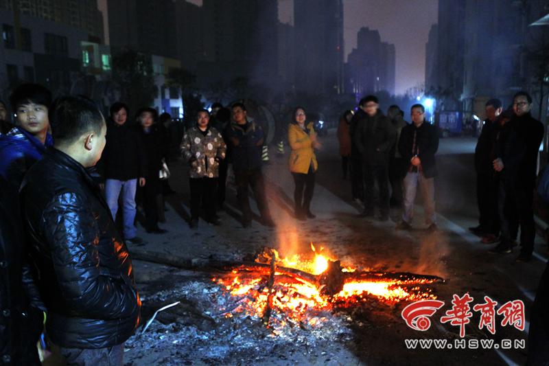 华商报讯(记者马虎振)昨晚10时50分,在西安丈八北路附近的鸿基新城小区二期物业办门口,聚了很多住户围着篝火取暖。他们想通过这种形式来表达对小区经常停电的抗议。