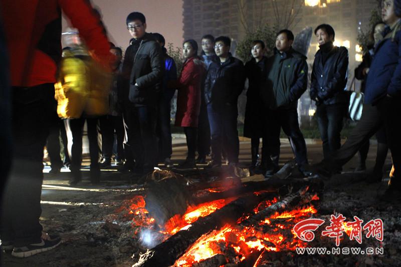 华商报讯(记者马虎振)昨晚10时50分,在西安丈八北路附近的鸿基新城小区二期物业办门口,聚了很多住户围着篝火取暖。他们想通过这种形式来表达对小区经常停电的抗议。