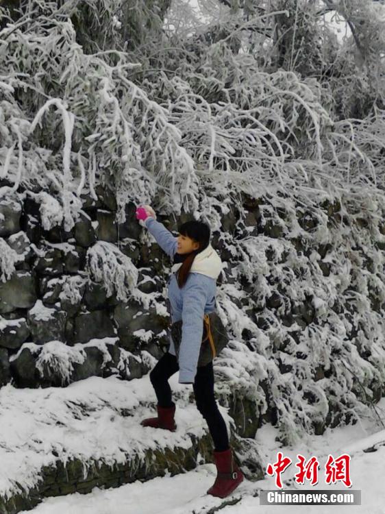 12月15日消息,大雪节气过后,受冷空气过境影响,重庆世界自然遗产地金佛山景区已被皑皑白雪覆盖。记者14日从金佛山景区获悉,目前景区最深处积雪已达到20厘米左右。恰逢周末,雪景也吸引了不少市民前往赏雪游玩。图为游客赏雪。 图片来源:金佛山景区供图