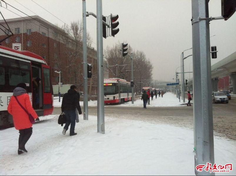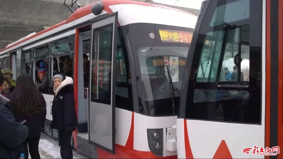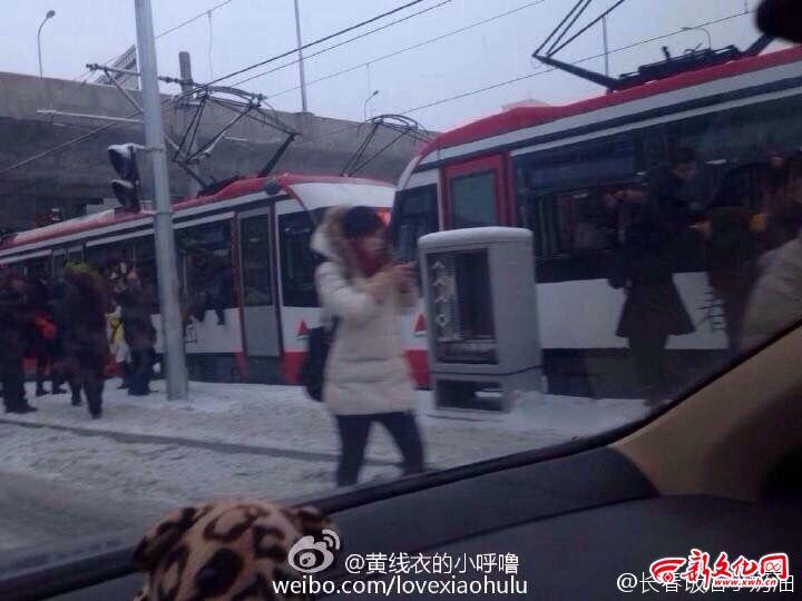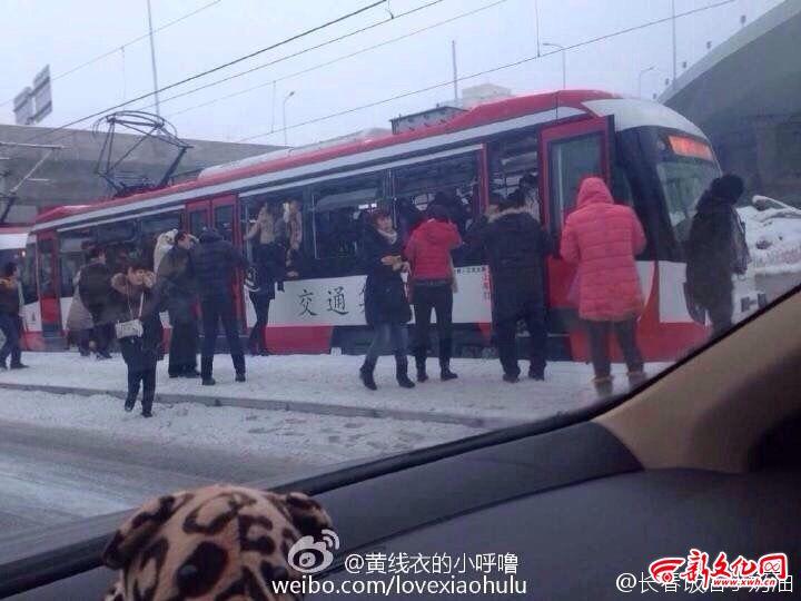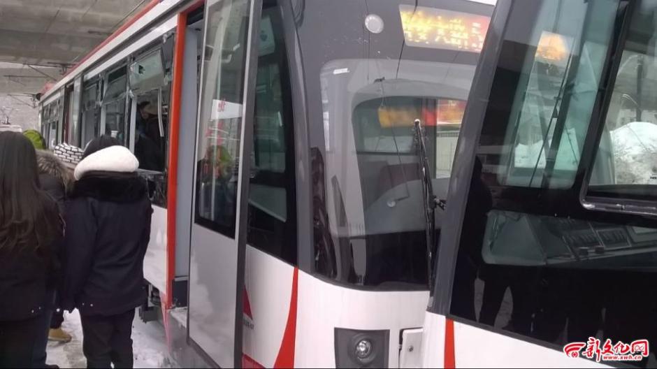 12月16日8时许,长春春城大街与东风大街交会处附近,54路有轨电车相撞,车窗玻璃瞬间成为碎片,无人受伤,车上乘客从车窗逃离,现场十余辆有轨电车相继堵在该路段。54路车队的工作人员向新文化网介绍说,目前车队工作人员正在现场处理事故,具体的事故原因目前还不清楚。图片来源:新文化网