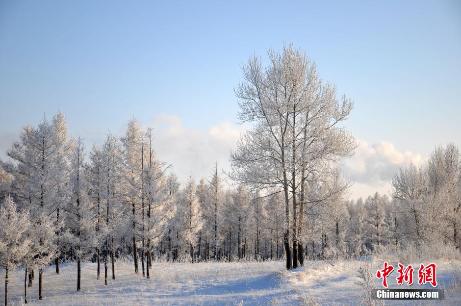 内蒙古呼伦贝尔多地气温降至零下35摄氏度以下,其中图里河今早6时最低气温降至零下40摄氏度。由于气温骤降,多地出现雾凇美景,尤其是公路两边的雾凇晶莹剔透,车辆穿行而过,犹如童话世界。这是12月16日在内蒙古呼伦贝尔拍摄的雾凇美景。中新社发 余昌军 摄