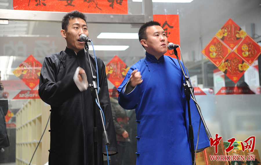 如今,越来越多的的士职工之家工会服务站在全国范围内建立,这是工会发挥优势,参与社会管理的重要载体;是工会服务职工,解决职工实际困难的创新之举;也是工会扩大影响,密切与职工联系的有效平台。图为市总工会2013年春节邀请相声表演团体到航站楼的士之家为出租车司机表演节目。 中工网记者 毛邓摄