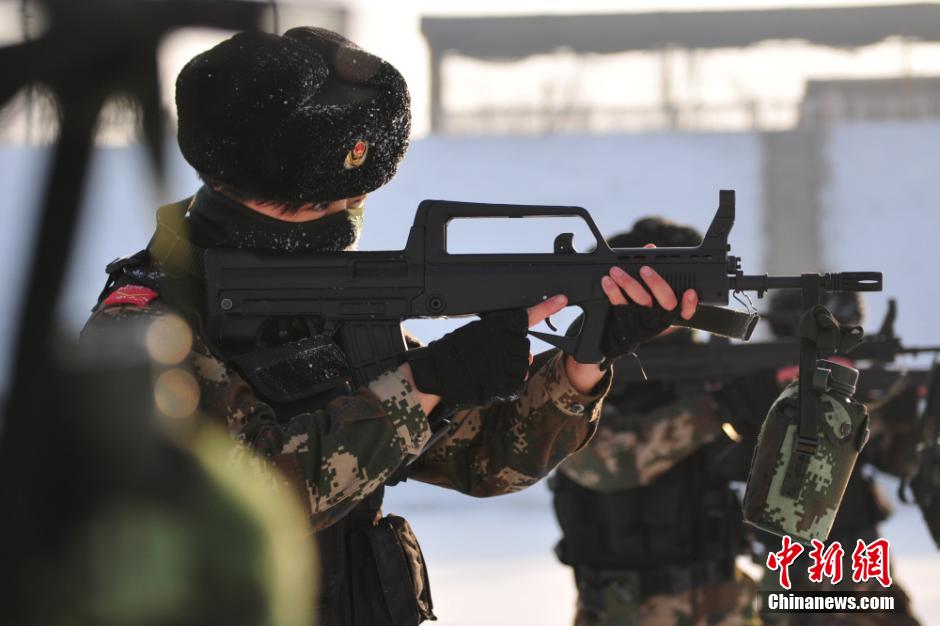 12月25日,驻扎在新疆昌吉市被喻为“天山女侠”的新疆公安边防总队训练基地女子特勤分队针对冬季季节特点,坚持以老带新,不断加强训练强度,科学组织开展擒敌、战术、体能、射击和抗寒适应性训练为主的训练内容,掀起冬季练兵热潮。据悉,该女子特勤分队队员均经过严格选拔,具有较好的身体素质、较高的文化水平,较突出的个人特长,经过长时间的特战训练,将担负维护社会安全稳定的重要使命。范昕羽 摄