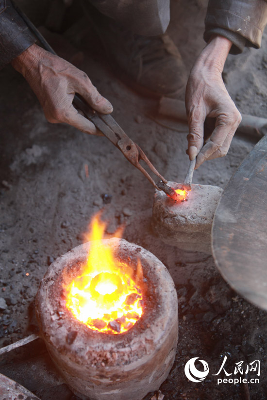 12月13日,补锅匠全德棣在做补锅前的准备。王滋创 摄
