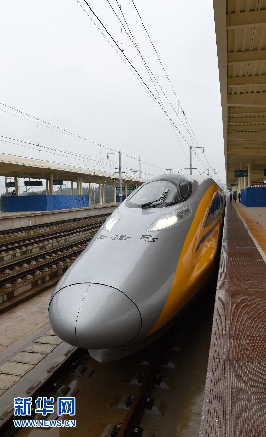 12月3日,一列高速综合检测列车在桂林西站进行联试联调运行。晨尝广州虾饺鲜,午游桂林漓江美,夜宿贵州吊脚楼……从12月26日开始,各路小伙伴即可搭乘动车奔跑起来,在一日之内尽览南中国的多样风情。虽然贵广高铁、南广高铁有着一个霸气的称号——“穿越喀斯特的超级铁路”,但带你体验的却是南中国“最温柔的风景线”。浓浓的粤味文化,写意的桂派山水,神秘的黔乡风情……小伙伴们,赶紧来瞧瞧“高大上”的黄金旅游高铁带来的福利吧。新华社记者 陆波岸 摄