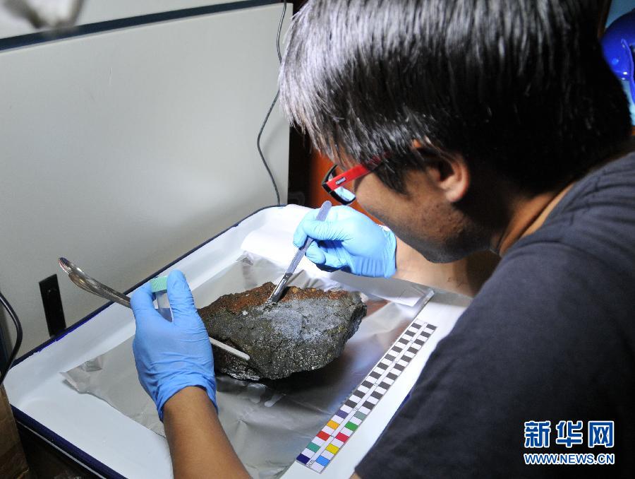 科考队员正在从“蛟龙”号采集到的硫化物样品上提取微生物(12月26日摄)。 12月26日,“蛟龙”号载人潜水器执行印度洋首次科学应用下潜,采集到硫化物“烟囱”碎片及岩石矿物样本20公斤,并进行了大范围环境参数测量与近底海水采集。新华社记者张旭东摄