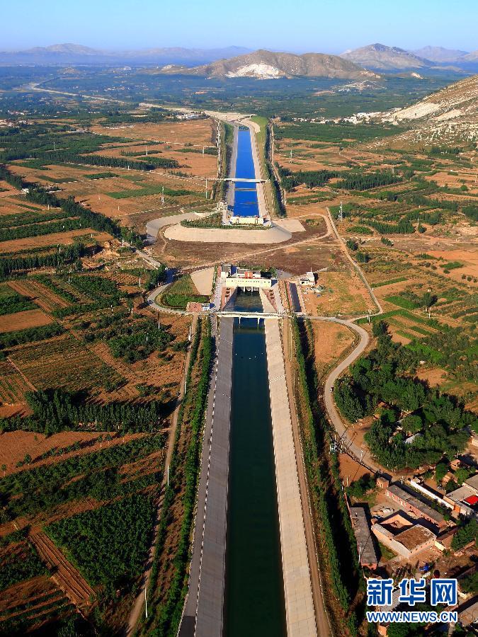 这是南水北调中线总干渠蒲阳河倒虹吸(2013年5月30日摄) 。南水北调中线一期工程于12月12日正式通水。连日来,汉江水从鄂豫交界的丹江口水库一路北上,跨越了1000多座桥梁、200多条河流,经过近半个月的旅程,预计于12月27日流至北京。北京市南水北调办25日表示,北京已制定2015年用水计划,通水首年计划调水量为8.18亿立方米。新华社发(南水北调宣传中心供图)
