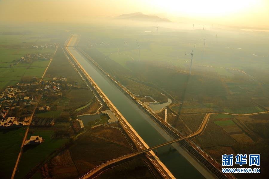 这是南水北调中线总干渠河南方城渠道(12月2日摄)。南水北调中线一期工程于12月12日正式通水。连日来,汉江水从鄂豫交界的丹江口水库一路北上,跨越了1000多座桥梁、200多条河流,经过近半个月的旅程,预计于12月27日流至北京。北京市南水北调办25日表示,北京已制定2015年用水计划,通水首年计划调水量为8.18亿立方米。新华社发(南水北调宣传中心供图)