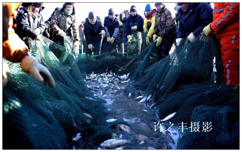2014年12月27日,内蒙古克什克腾旗达里湖冬季捕鱼,近两万游客慕名而来,在零下30摄氏度的严寒中,见证了克什克腾旗达里湖渔民的冬捕盛会。
