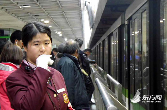 今天是新年的第一个工作日的早高峰,南京东路地铁站的客流压力明显增大。妹妹范晶莹与同事一道全力参与到了早高峰保驾的工作。而此后的站内巡查工作更是事无巨细,琐碎而有繁忙。这四年来的每一天,她们姐妹俩几乎都是这样度过的。