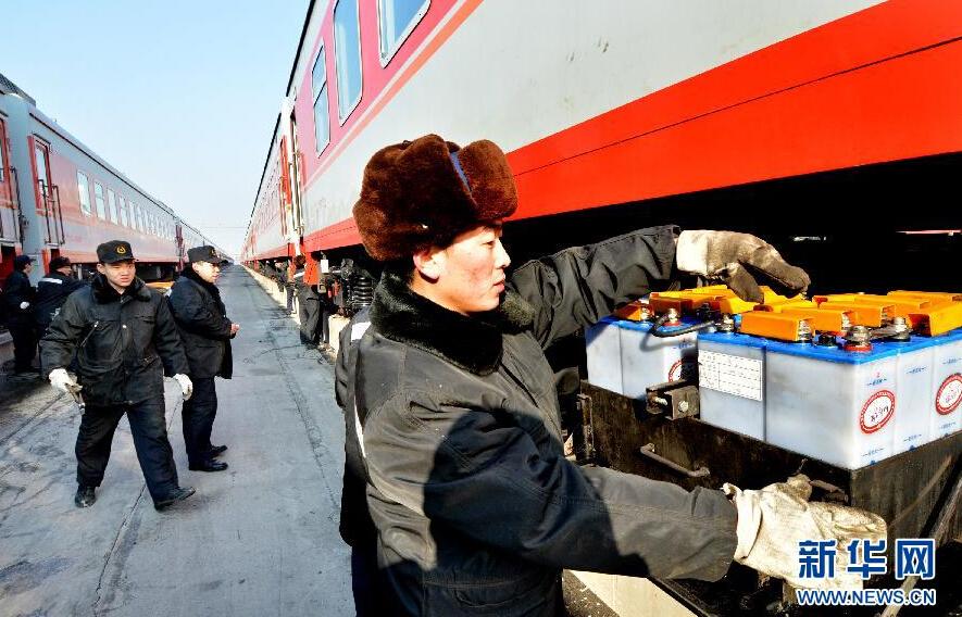 1月22日,天津动车客车段的职工对临客车辆进行通信连接线摘挂作业。据中国铁路总公司介绍,针对火车票预售期调整后市场变化和旅客需求情况,春运期间全路共增开临客列车560对。为全面做好春运临客车辆整备工作,天津动车客车段对编组的春运临客车辆进行检查,排除各类隐患故障,保障旅客春运出行安全。 杨宝森 摄 图片来源:新华网