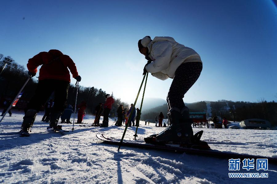 1月22日,游客在亚布力滑雪场滑雪。黑龙江省亚布力是中国冰雪旅游的热点地区,每年滑雪季都吸引大量游客前来游玩。自2014年12月5日至2015年1月18日,已累计接待滑雪者近15万人。新华社记者王凯摄